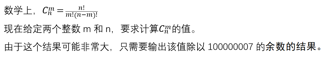 这是一道多组案例的题目,一个正整数T,表示案例的数量。(T<=10000) 每组案例由两个整数m和n组成。(0 <= m <= 4000, 1 <= n <= 4000, m <= n) |